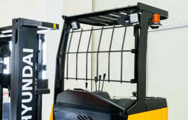 The driver seat front guard protects the driver and the top panel from falling cargo. This is a very useful option to have when handling frozen fish products.