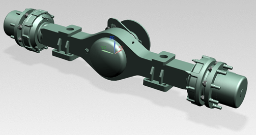 The D41 drive axle of a German heavy equipment company Kessler is mounted. This drive axle contains semi-permanent wet disc brake and SAHR caliper-type auto-parking brake.