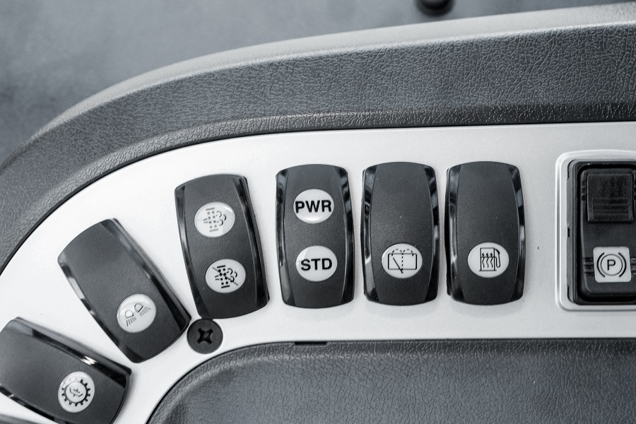 When the engine stops or OPSS starts, the parking brake is automatically activated to prevent human errors. If the driver needs to use the parking brake while the engine is running, driver can apply/release the brake using a dedicated button.