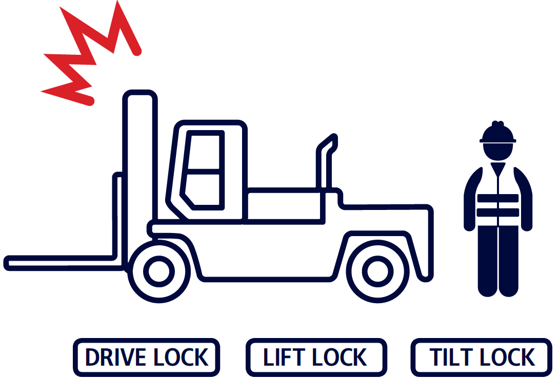 The OPSS restricts driving, lifting, and tilting when the operator leaves the driver’s seat in order to prevent accidents.