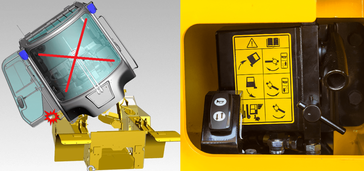 If the right door is open, damage to the door is prevented by prohibiting cabin tilting. The cabin can be opened and closed both automatically or manually.