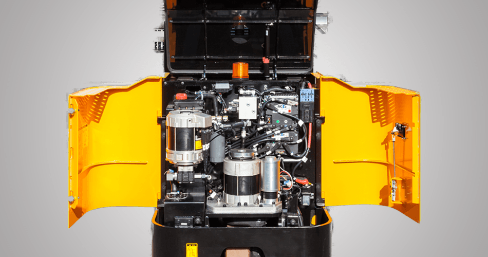 The enclosed drive and pump motor with AC technology combine power, high maintenance intervals and excellent durability. The ZF transmission converts the drive engine’s power to any direction the driver requires.