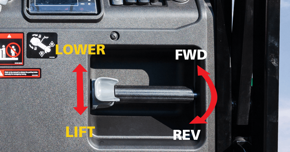 The ergonomic control lever allows the operator to raise and lower the platform, and control the travel function and horn, with just one hand.