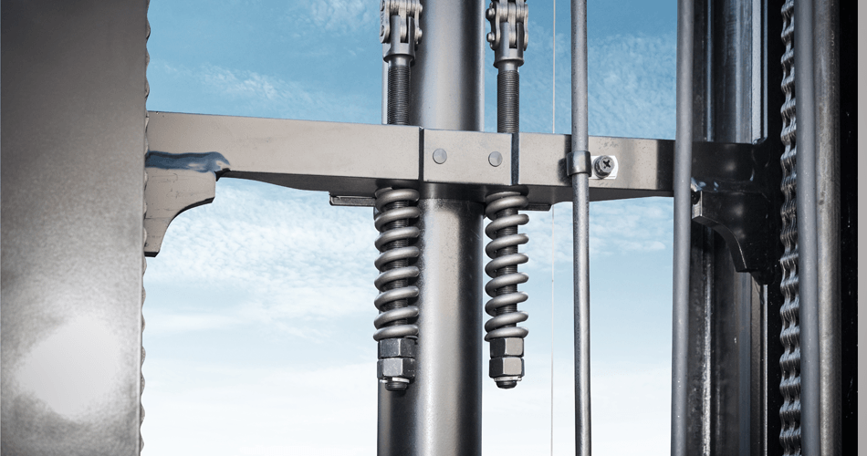 Springs on the chain anchors cushion the impact of the platform during lifting and lowering reducing the operator’s exposure to platform vibrations.