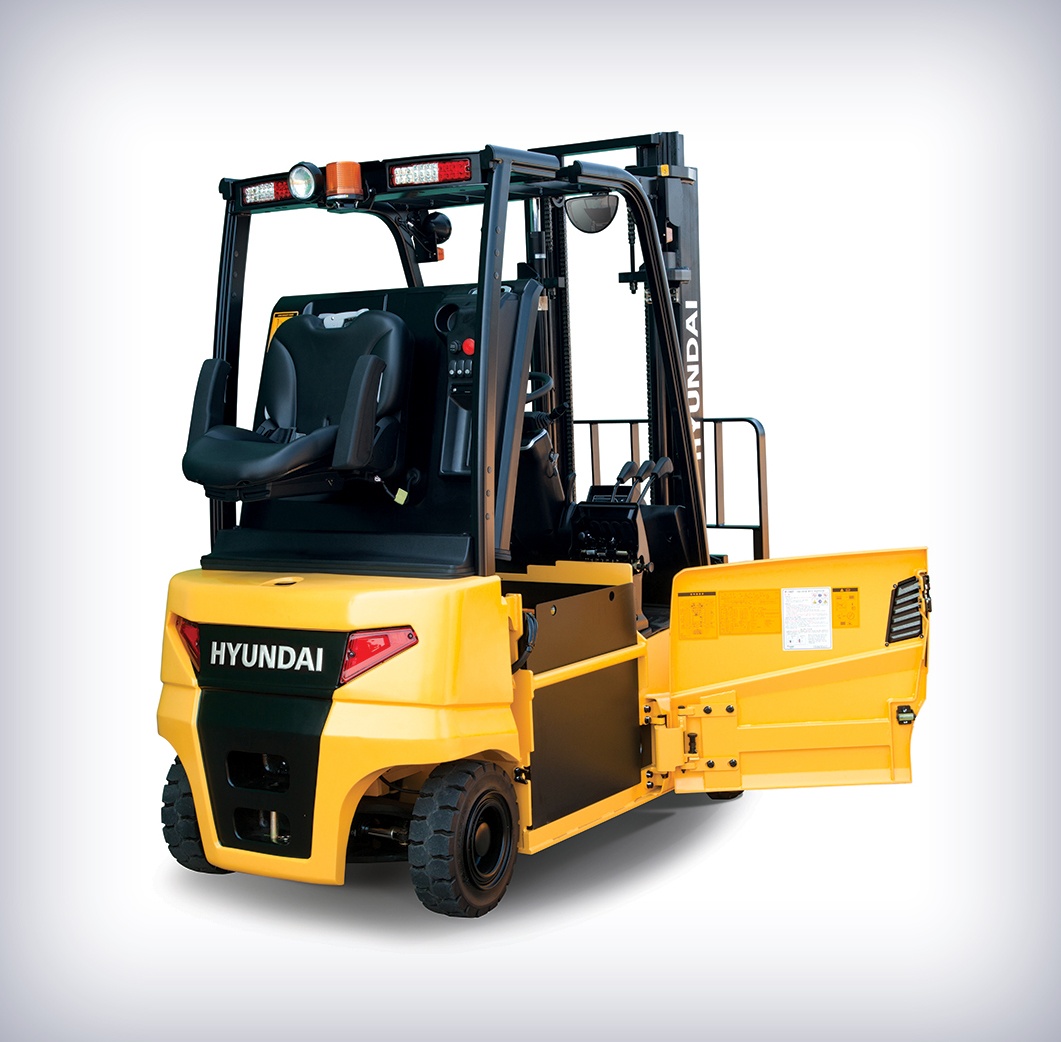 Introducing the upgraded Hyundai 9 series 48 volt electric four wheel design counter balance forklifts. The 9 Series brings customers added value with market leading energy efficiency and enhanced powertrain durabilty. This forklift is unique in that it is also capable of running on a Lithium ion battery with no cost of modifications.