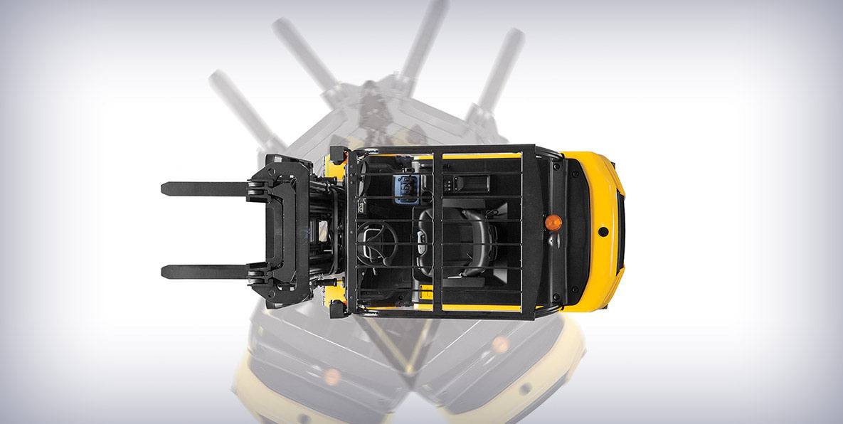 The combination of 3-wheel design and rear wheel drive offers central pivot turning. This allows the driver to work in very confined spaces.
