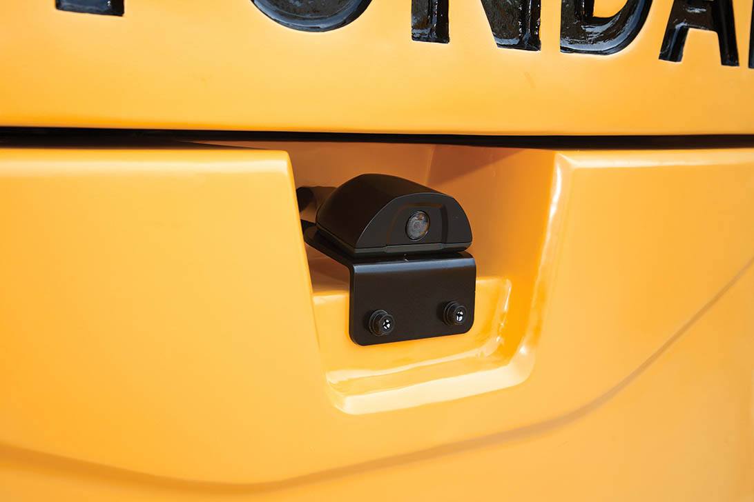 The rear view camera provides great rear visibility, and the monitor supports 4 camera channels for operator convenience.